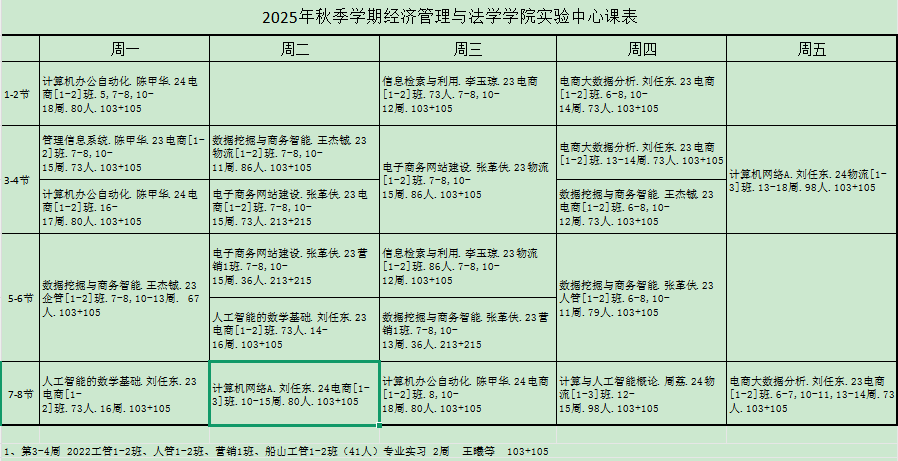 2025年秋季学期课表